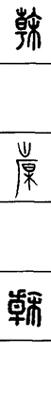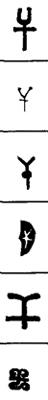 从上到下依次是小篆、甲骨文、金文、古玺及战国文字、缪篆及汉代文字、鸟虫篆。