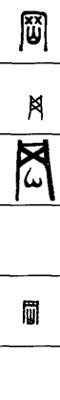 从上到下依次是小篆、甲骨文、金文、古玺及战国文字、缪篆及汉代文字、鸟虫篆。