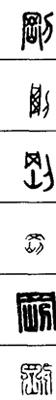 从上到下依次是小篆、甲骨文、金文、古玺及战国文字、缪篆及汉代文字、鸟虫篆。