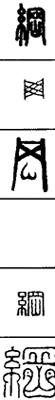 从上到下依次是小篆、甲骨文、金文、古玺及战国文字、缪篆及汉代文字、鸟虫篆。