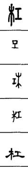 从上到下依次是小篆、甲骨文、金文、古玺及战国文字、缪篆及汉代文字、鸟虫篆。