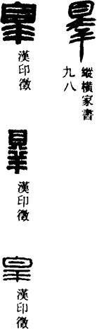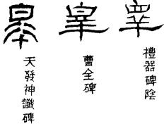 从上到下依次是小篆、甲骨文、金文、古玺及战国文字、缪篆及汉代文字、鸟虫篆。