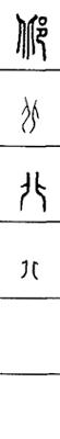 从上到下依次是小篆、甲骨文、金文、古玺及战国文字、缪篆及汉代文字、鸟虫篆。