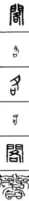 从上到下依次是小篆、甲骨文、金文、古玺及战国文字、缪篆及汉代文字、鸟虫篆。