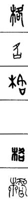 从上到下依次是小篆、甲骨文、金文、古玺及战国文字、缪篆及汉代文字、鸟虫篆。