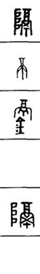 从上到下依次是小篆、甲骨文、金文、古玺及战国文字、缪篆及汉代文字、鸟虫篆。