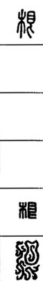 从上到下依次是小篆、甲骨文、金文、古玺及战国文字、缪篆及汉代文字、鸟虫篆。