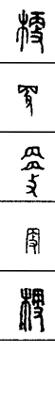 从上到下依次是小篆、甲骨文、金文、古玺及战国文字、缪篆及汉代文字、鸟虫篆。
