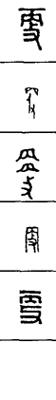 从上到下依次是小篆、甲骨文、金文、古玺及战国文字、缪篆及汉代文字、鸟虫篆。