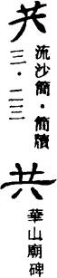 〈辨〉共字金文象双手捧璧之形。古用为供奉、恭敬字,供、恭字后起。篆书讹变,楷书作共。引申为共同字。