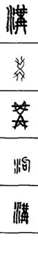 从上到下依次是小篆、甲骨文、金文、古玺及战国文字、缪篆及汉代文字、鸟虫篆。