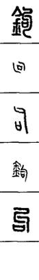从上到下依次是小篆、甲骨文、金文、古玺及战国文字、缪篆及汉代文字、鸟虫篆。