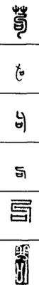 从上到下依次是小篆、甲骨文、金文、古玺及战国文字、缪篆及汉代文字、鸟虫篆。