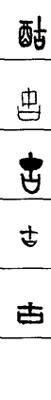 从上到下依次是小篆、甲骨文、金文、古玺及战国文字、缪篆及汉代文字、鸟虫篆。