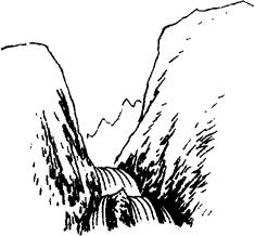 两山之间狭长而有出口的夹道或水道
