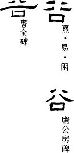 〈辨〉谷字甲金文为谷本字,下部从口或从凵,象示谷底下洼处,上部象示河川通过冲刷而成的谷壁;篆书讹变,楷书作谷。谷2本作穀,从禾
