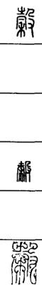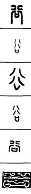 从上到下依次是小篆、甲骨文、金文、古玺及战国文字、缪篆及汉代文字、鸟虫篆。