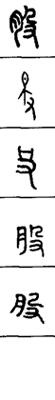 从上到下依次是小篆、甲骨文、金文、古玺及战国文字、缪篆及汉代文字、鸟虫篆。