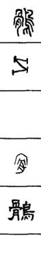 从上到下依次是小篆、甲骨文、金文、古玺及战国文字、缪篆及汉代文字、鸟虫篆。