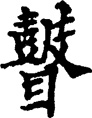 眼睛失明。《庄子·大宗师》:“瞽者无以与乎青黄黼黻之观。”(与yù:参与。黼fǔ:黑白相间的花纹。黻fú:青黑相间的花纹。)又为眼睛失明的人,盲人。《荀子·乐论》:“墨子之于道也,犹瞽之于白黑也。”代指乐官,古代用盲人充当乐官。《诗经·周颂·有瞽》:“有瞽有瞽,在周之庭。”(庭:指宗庙的大庭。)
