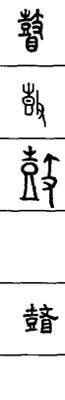 从上到下依次是小篆、甲骨文、金文、古玺及战国文字、缪篆及汉代文字、鸟虫篆。