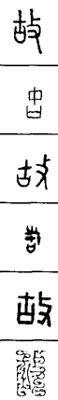 从上到下依次是小篆、甲骨文、金文、古玺及战国文字、缪篆及汉代文字、鸟虫篆。