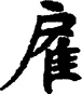 雇音gù。雇的本义是鸟名,即九雇。雇音hù。《说文》:“九雇,农桑候鸟。”约在西汉末,假借为雇,出钱招人服劳务。《集韵》:“雇,佣也。”《后汉书·光武皇帝本纪上》:“当验问者即就验,女徒雇山归家。”(判处检验考察、审问的立即进行查问,女犯要僱人在山伐木赎罪,让她回家。)《后汉书·桓帝本纪》:“其百姓吏民者,以见钱雇直。”(那些官吏百姓积存粮食的,以现钱付给僱佣的酬金。见,同现。直,同值。)苏轼《乞罢宿城状》:“展筑外城一十一里有余,役兵及雇夫共五十七万有余工。”(扩建外城十一里多,需役使士兵及僱用民伕共计五十七万多工。)“雇工”义,后来加义符“人”写作“僱”。今又简化为“雇”。