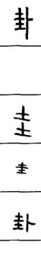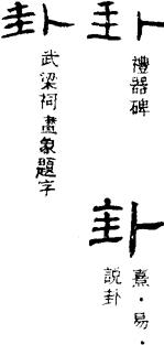 guà 《广韵》:说文,筮也;易疏云,县挂万象于其上。 古卖切 蟹合二去卦见
