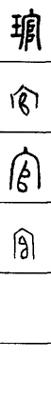 从上到下依次是小篆、甲骨文、金文、古玺及战国文字、缪篆及汉代文字、鸟虫篆。