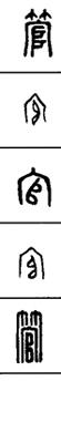 从上到下依次是小篆、甲骨文、金文、古玺及战国文字、缪篆及汉代文字、鸟虫篆。