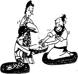 【辨析】盥、沐、沬、洗、浴、洒。“盥”是洗手,“沐”是洗发,“沬(huì)”是洗脸,“洗(xiǎn)”是洗脚,“浴”是洗身,“洒(xǐ)”是一般的洗涤(后写作“洗”)。
