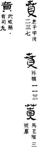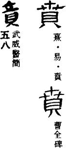 銀雀山竹簡《孫臏兵法·殺士》:“……之親,或死賁墓。”影本注讀賁為墳。引《管子·九變》:“凡民之所以守戰至死而不德其上者有數以至焉。曰:大者親戚墳墓之所在也,田宅富厚足居也。不然,則州縣鄉黨與宗族足懷樂也……”簡文“或死墳墓……”當是指士卒為保護親族墳墓而守戰至死。按《隸續》一王政碑:“研典賁。”洪适釋以賁為墳。又《穀梁傳·僖公十年》:“覆酒於地而地賁。”《國語·晉語二》賁作墳。又按賁《廣韻》彼義切,文飾、華美義及賁卦音bi;虎賁義音ben;《集韻》父吻切,則亦音fen。