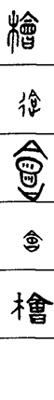 从上到下依次是小篆、甲骨文、金文、古玺及战国文字、缪篆及汉代文字、鸟虫篆。