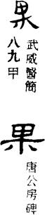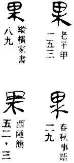 【说明】“果”为象形字,像树上结有果实形。参附录三。