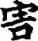 ㈠hài ①伤害;杀害。如:遇害。《三国志·魏书·武帝纪》:“为陶谦所害。”②灾害;祸患。如:虫害。③坏的;有害的。如:害鸟。④妨碍。《左传·桓公六年》:“谓其三时不害,而民和年丰也。”⑤妒忌。《史记·屈原贾生列传》:“上官大夫与之同列,争宠而心害其能。”