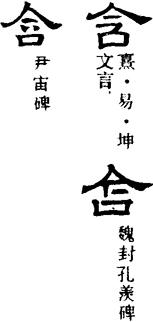馬王堆帛書《六十四卦·川(坤)》六三:“合章可貞,或從王事,无〔成〕有終。”合通行本《易》作含。按“含章”高亨《周易古經今注》疑當讀為“偤商”,亦即“戡商”,指武王克商之事,可備一説。
