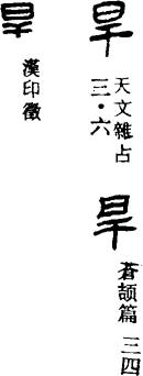 ①干旱,旱灾。《孟子·梁惠王上》:“七八月之间旱,则苗槁矣。”《国语·越语上》:“旱则资舟,水则资车。”(资:囤积。水:指水灾。)②山名。《诗经·大雅·旱麓》:“瞻彼旱麓,榛楛济济。”(榛楛hù:指丛生的杂树。)