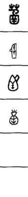 从上到下依次是小篆、甲骨文、金文、古玺及战国文字、缪篆及汉代文字、鸟虫篆。