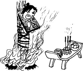 古代祭祀,常有以人为牺牲品的现象。如遇水灾,则投人牲入水以祭河神;遇旱灾,则焚烧活人而祭天神。甲骨文的熯字,象把一头戴木枷、身遭绳绑的活人置于火上焚烧之形,其本义指熯祭,即焚人牲以祭天求雨,也泛指焚牲祭天的一种方法,如熯牛、熯羊等。天旱则熯祭,故熯又代指天旱,引申为干旱、以火烘干等义。《说文解字》:“熯,干貌。”字与“暵”相通。