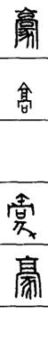 从上到下依次是小篆、甲骨文、金文、古玺及战国文字、缪篆及汉代文字、鸟虫篆。