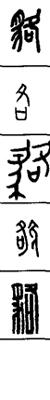 从上到下依次是小篆、甲骨文、金文、古玺及战国文字、缪篆及汉代文字、鸟虫篆。