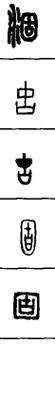 从上到下依次是小篆、甲骨文、金文、古玺及战国文字、缪篆及汉代文字、鸟虫篆。