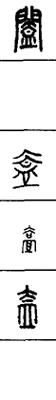 从上到下依次是小篆、甲骨文、金文、古玺及战国文字、缪篆及汉代文字、鸟虫篆。