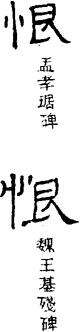 〈辨〉恨从心,本义为遗憾、埋怨;引申为仇恨。声符艮读gèn。