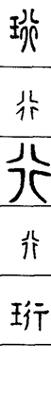 从上到下依次是小篆、甲骨文、金文、古玺及战国文字、缪篆及汉代文字、鸟虫篆。