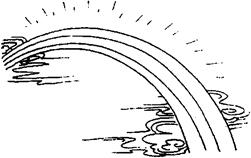 出现在空中的弧形彩色光带,由阳光射入散布于空中的小水珠经折射和反射而形成,由外圈到内圈呈红、橙、黄、绿、蓝、靛、紫七种颜色。也说彩虹。
