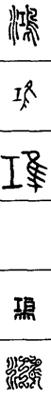 从上到下依次是小篆、甲骨文、金文、古玺及战国文字、缪篆及汉代文字、鸟虫篆。