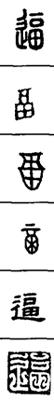 从上到下依次是小篆、甲骨文、金文、古玺及战国文字、缪篆及汉代文字、鸟虫篆。