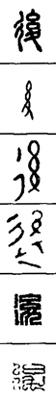 从上到下依次是小篆、甲骨文、金文、古玺及战国文字、缪篆及汉代文字、鸟虫篆。