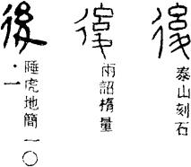 (一)hòu 《广韵》:先後。说文,迟也。 胡口切 流开一上厚匣